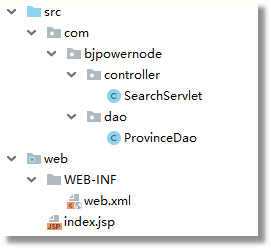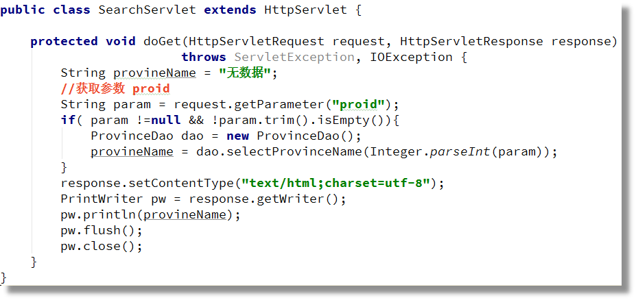 項目是一個web應用, index.jsp發(fā)送請求, SearchServlet接收請求, 調用ProvinceDao從數(shù)據(jù)庫獲取指定id的省份名稱。