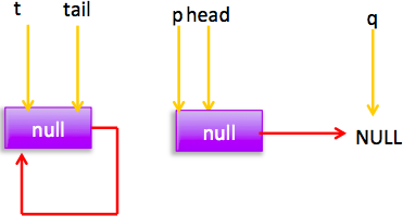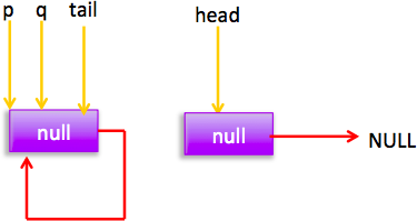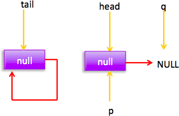 所以會執(zhí)行(2)分支 結(jié)果 p=head,然后循環(huán),循環(huán)后指針分布: