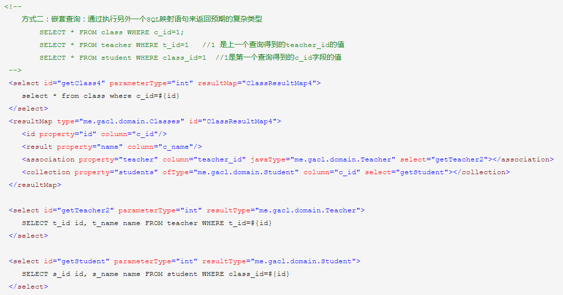 在MyBatis當(dāng)中,查詢結(jié)果集被封裝為Java對(duì)象,可以通過resultType,也可以通過resultMap,在resultMap當(dāng)中描述了數(shù)據(jù)庫(kù)表的列與Java對(duì)象的屬性之間的對(duì)應(yīng)關(guān)系。在映射關(guān)系中,還可以通過resultMap的typeHandler設(shè)置實(shí)現(xiàn)查詢結(jié)果值的類型轉(zhuǎn)換。另外,最重要的是通過resultMap的子標(biāo)簽比如、等,可以實(shí)現(xiàn)一對(duì)一、一對(duì)多等的映射。