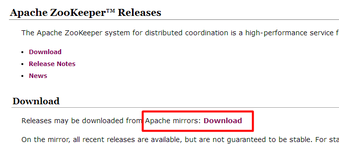 官網(wǎng)下載地址: http://zookeeper.apache.org/