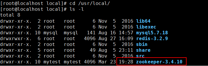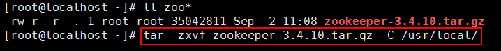 執(zhí)行命令:tar -zxvf zookeeper-3.4.10.tar.gz -C /usr/local/