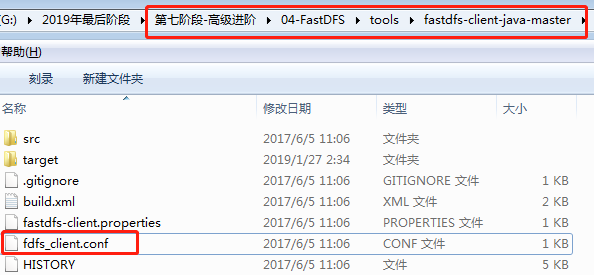 3. 拷貝源代碼包中的fdfs_client.conf文件到resources目錄下,在里面主要配置tracker地址
