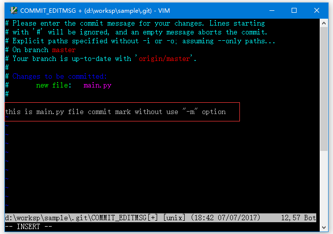 git commit main.py -m "this is main.py file commit mark use -m option"
