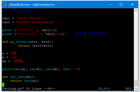 假設(shè)要在wchar_support分支中執(zhí)行更改,修改wchar_support分支中的代碼。添加一個(gè)計(jì)算長(zhǎng)度的函數(shù):count_len(obj),代碼變化如下: