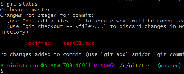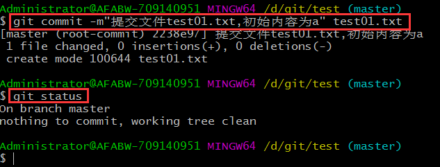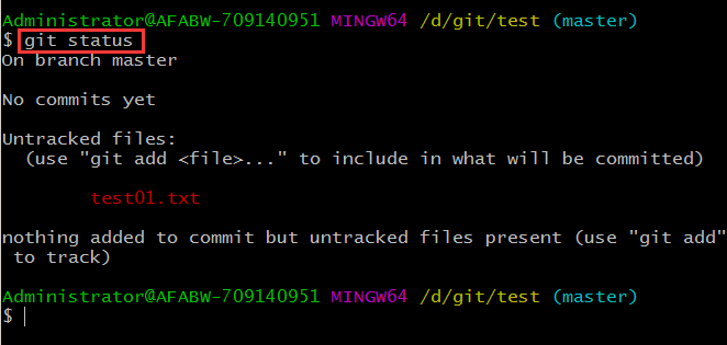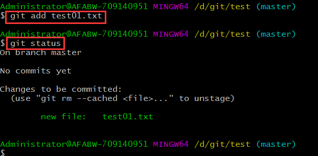 ⒈在一個(gè)已經(jīng)初始化的目錄下(例如test目錄下)創(chuàng)建文件test01.txt
