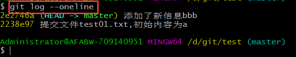 git log --oneline:查看本地庫更新歷史記錄(簡化版)