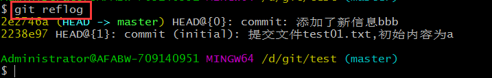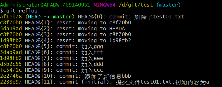 git reflog:查看本地庫更新歷史記錄(展現(xiàn)HEAD指針)