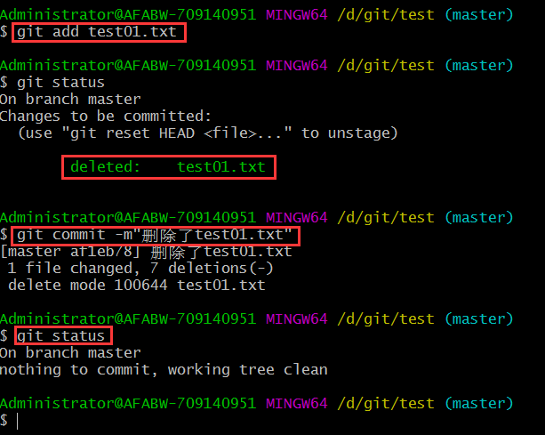 注意:刪除文件后的git操作,和添加文件后的git操作方式是一致的,也是先add,再commit