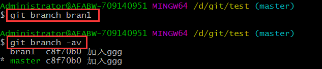 創(chuàng)建完畢后,再次查看分支,表示現(xiàn)在共有兩個(gè)分支master和bran1