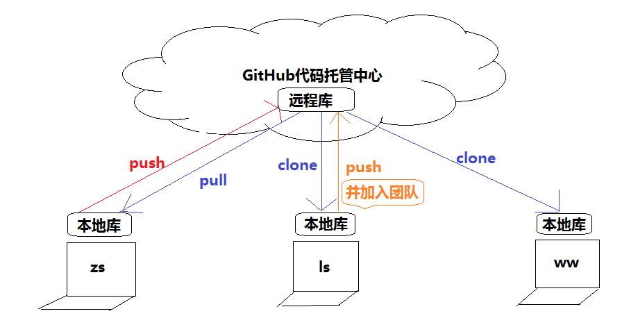 團(tuán)隊(duì)協(xié)作開發(fā)方式如下圖所示: