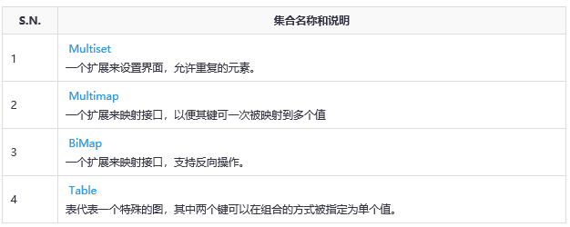 Guava介紹了基于開發(fā)者的應(yīng)用開發(fā)經(jīng)驗(yàn),許多先進(jìn)的集合。以下是有用的集合列表: