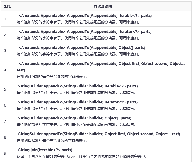 Joiner 提供了各種方法來處理字符串加入操作,對象等。