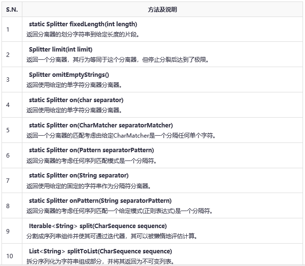 Splitter 提供了各種方法來(lái)處理分割操作字符串,對(duì)象等。