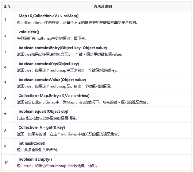 多重映射接口擴展映射,使得其鍵一次可被映射到多個值。