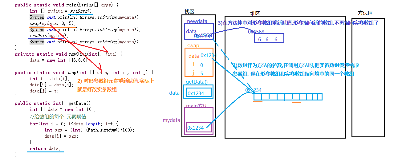 //在方法體中對形參數(shù)組重新賦值,形參數(shù)組指向新的數(shù)組,不再指向?qū)崊?shù)組