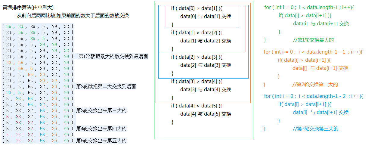 * 從前向后兩兩比較,如果前面的數大于后面的數就交換