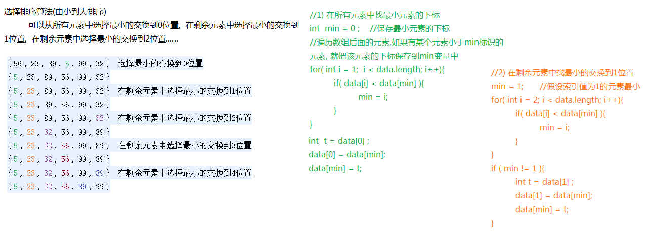 int min = x ; //保存最小元素的下標,假設x元素最小