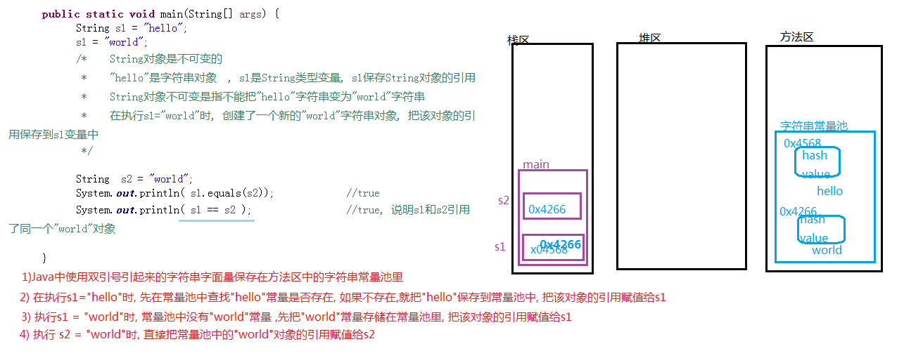 System.out.println( s1 == s2 ); //true, 說明s1和s2引用 了同一個"world"對象