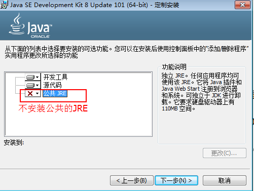 如果有jre目錄, 把jre目錄刪除, 重新安裝JDK,不安裝公共的JRE