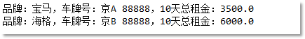 System.out.println("品牌:" + b.getBrand() + ",車牌號(hào):" + b.getLicensePlateNumber() + ",10天總租金:" + b.getSumRent(10));