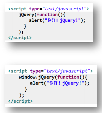 $(document)與$()、jQuery()、window.jQuery()是等價(jià)的,所以以上 jQuery 代碼等效于如下代碼: