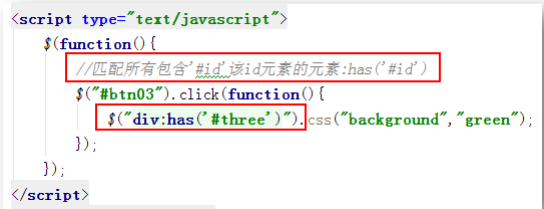 匹配所有包含’#id’元素的元素:has(‘#id’)