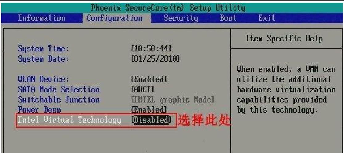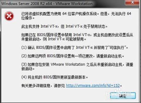 沒有啟用 Intel VirtualTechnology(VT)既“虛擬化技術(shù)” ,這種技術(shù)讓可以讓一個 CPU 工作起來就像多個 CPU 并行運行,從而使得在一部電腦內(nèi)同時運行多個操作系統(tǒng)成為可能。