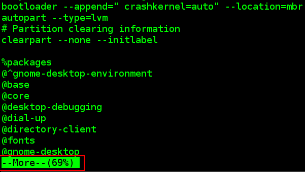 例如:more /root/anaconda-ks.cfg (命令輸入完按 Enter)