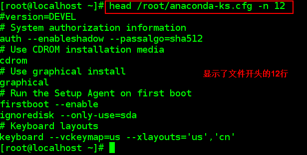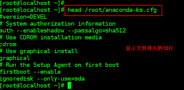 ① 例 如:head /root/anaconda-ks.cfg (默認(rèn)是 10 行)