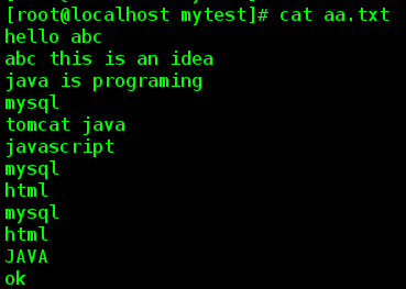 準(zhǔn)備一個(gè)文件 aa.txt ,內(nèi)容如下。 test.txt 內(nèi)容同 aa.txt