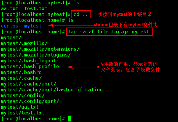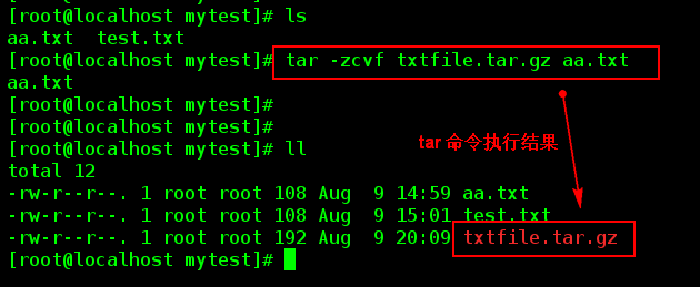 例如 tar -zcvf txt.tar.gz aa.txt test.txt