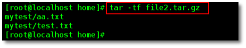 顯示壓縮文件的內(nèi)容。語法:tar -tf 歸檔文件名