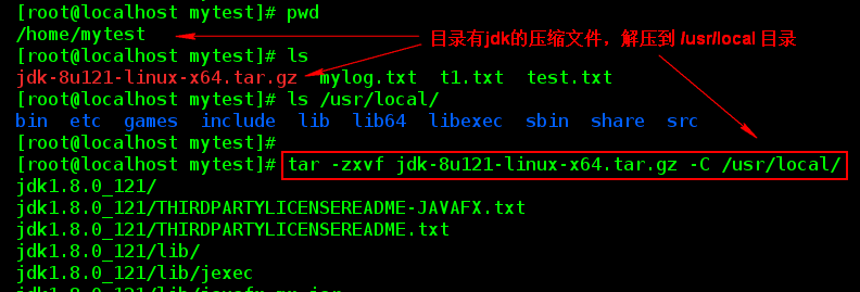 例 如 :tar -zxvf jdk-8u121-linux-x64.tar.gz -C /usr/local/