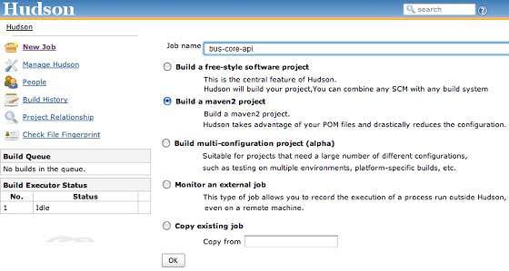 如果使用 CI 服務(wù)器更,我們每次的一個新項(xiàng)目,比如說實(shí)例中的 app-mobile-ui,添加為依賴 bus-core-api 項(xiàng)目時,開發(fā)者就不需要更新 bus-core-api 項(xiàng)目的 pom。Hudson 將會借助 Maven 的依賴管理功能實(shí)現(xiàn)工程的自動化創(chuàng)建。