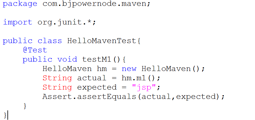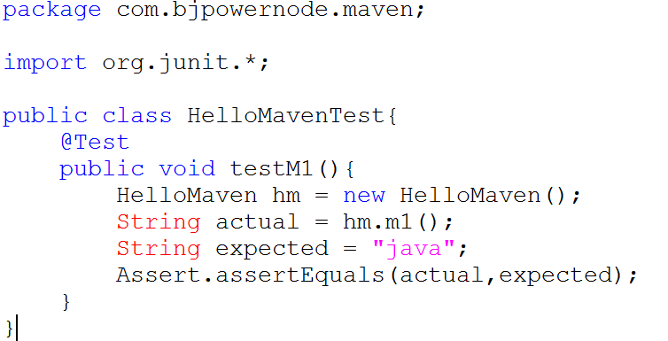 第一步:在 D:\course\javaProjects\22-maven\maven-01\src\test\java\com\bjpowernode\maven 目錄下新建 HelloMavenTest.java 源文件