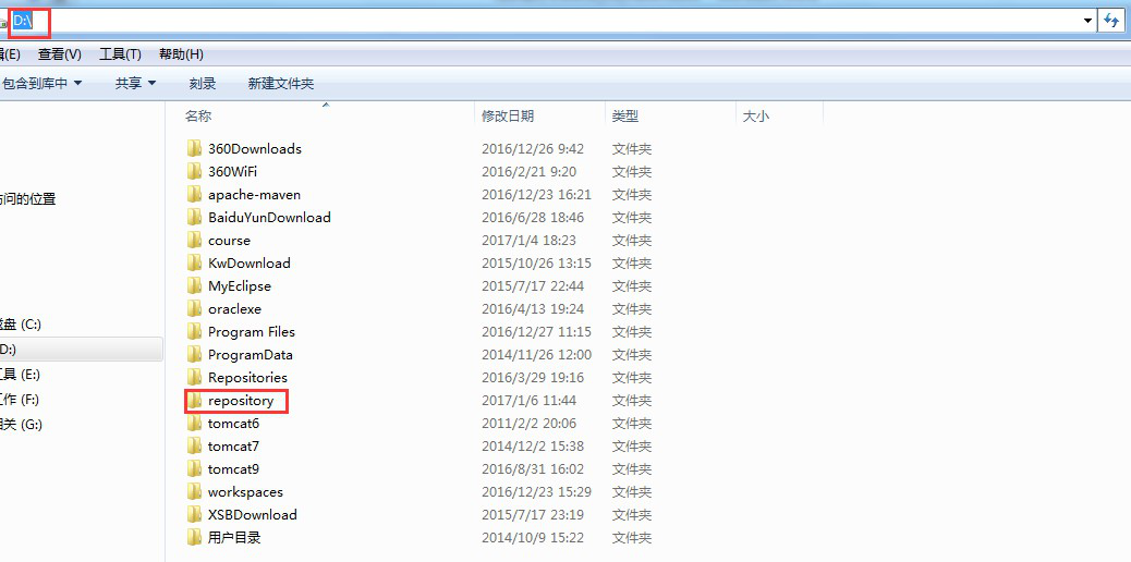 轉移倉庫位置:將當前用戶下的 repository 移動到 D 盤根目錄下移動前: