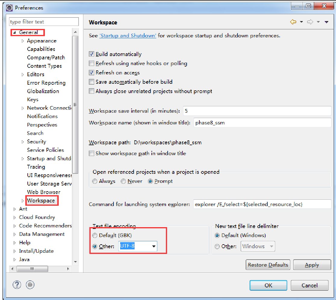 第一步:修改工作空間字符集編碼方式為 UTF-8