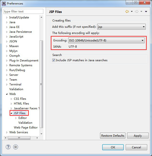 第三步:修改創(chuàng)建 jsp 文件默認的編碼方式