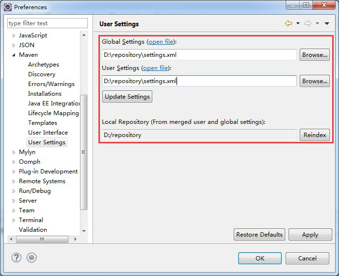 第五步:執(zhí)行 Maven 本地倉庫位置以及 settings.xml 配置文件
