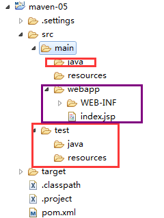 第二步:補充缺少的 test 目錄,java 目錄,分析比普通的 java 工程多了一個 webapp