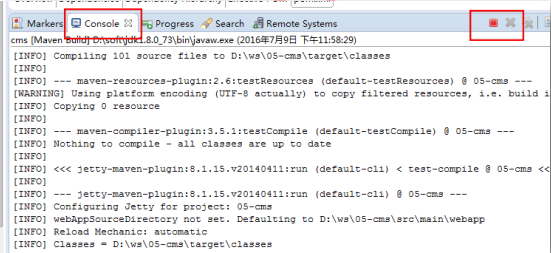 ⒏ 要停止工程只須單擊 console 窗口上的停止按鈕即可