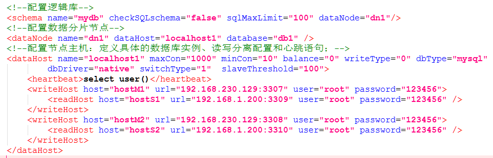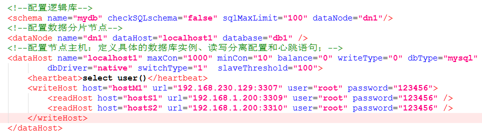 <readHost host="hostS3309" url="localhost:3309" user="root" password="123456" />