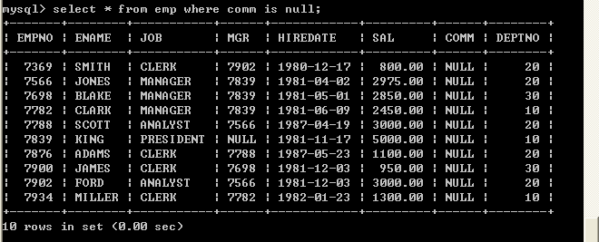 以上也無法查詢出符合條件的數(shù)據(jù),因?yàn)閚ull類型比較特殊,必須使用 is來比較。
