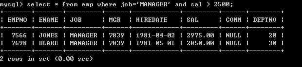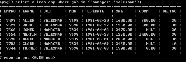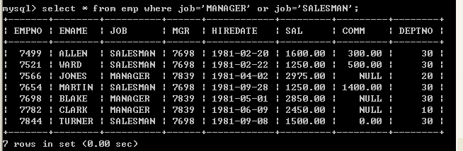 select * from emp where job='MANAGER' or job='SALESMAN';