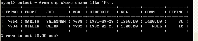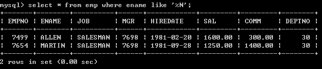 like稱為模糊查詢,支持%或下劃線匹配 %匹配任意個(gè)字符 下劃線,一個(gè)下劃線只匹配一個(gè)字符 |