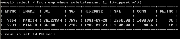 select * from emp where substr(ename, 1, 1)=upper('m');