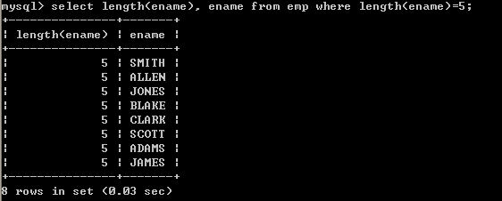 e.*:取emp表所有的字段 , emp as e 是表的別名可以省略as emp e