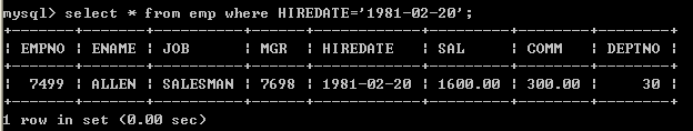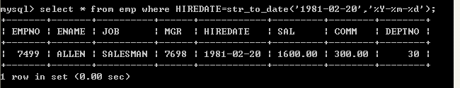 select * from emp where HIREDATE=str_to_date('1981-02-20','%Y-%m-%d');