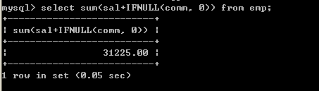 select sum(sal+IFNULL(comm, 0)) from emp;