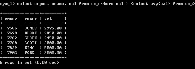 select empno, ename, sal from emp where sal > (select avg(sal) from emp);